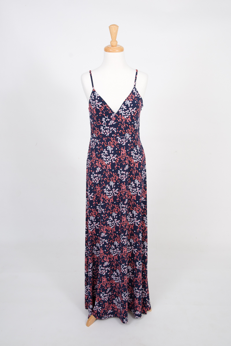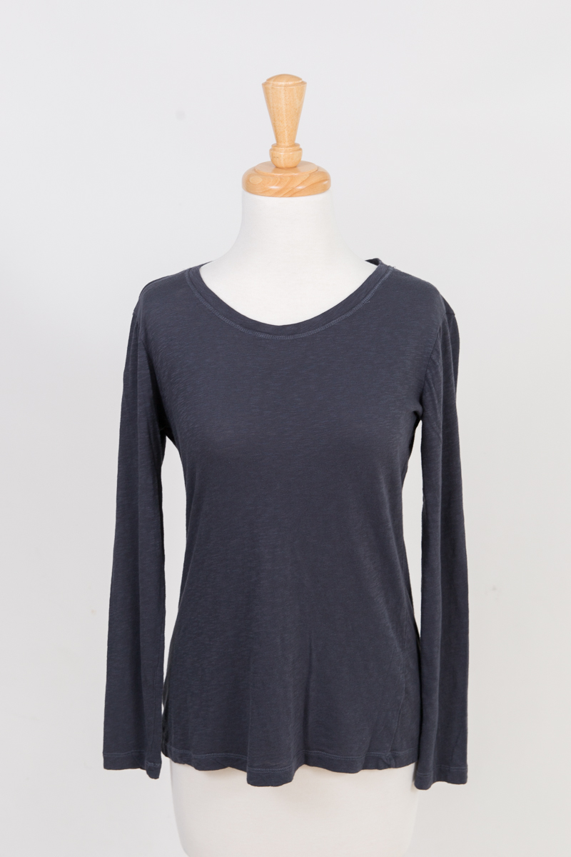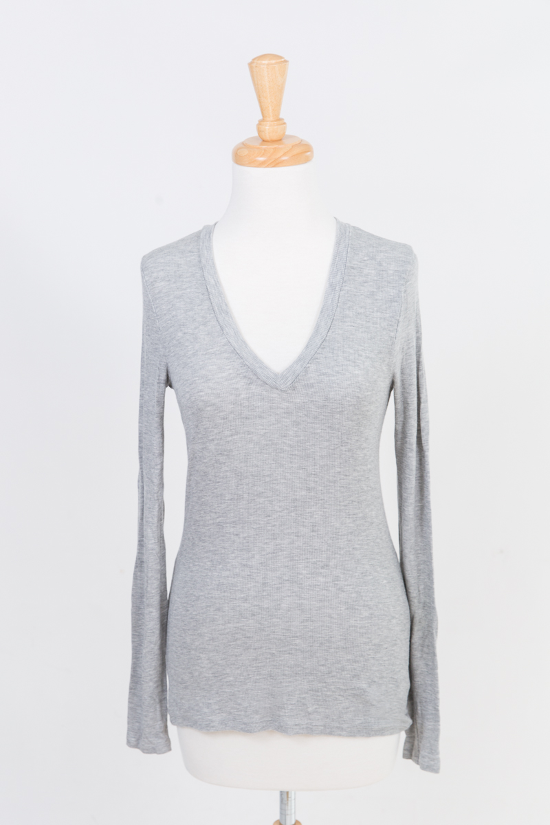 3) “Caslon” dark grey round neck long sleeve top, “Thread & Supply” White & Blue Striped Long Sleeve Button Front Shirt