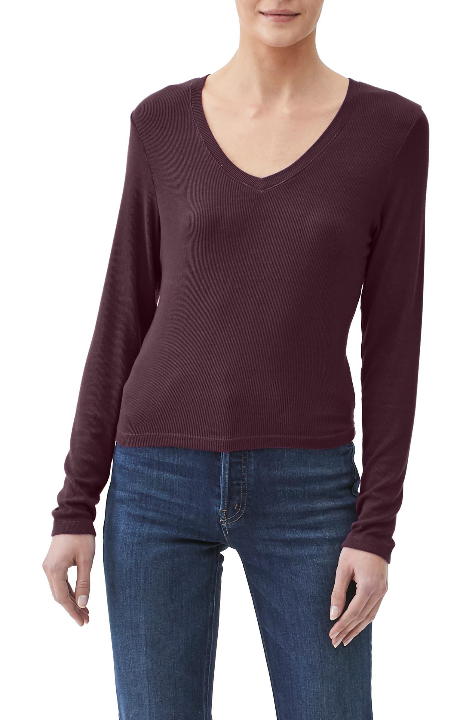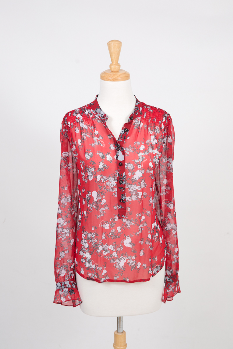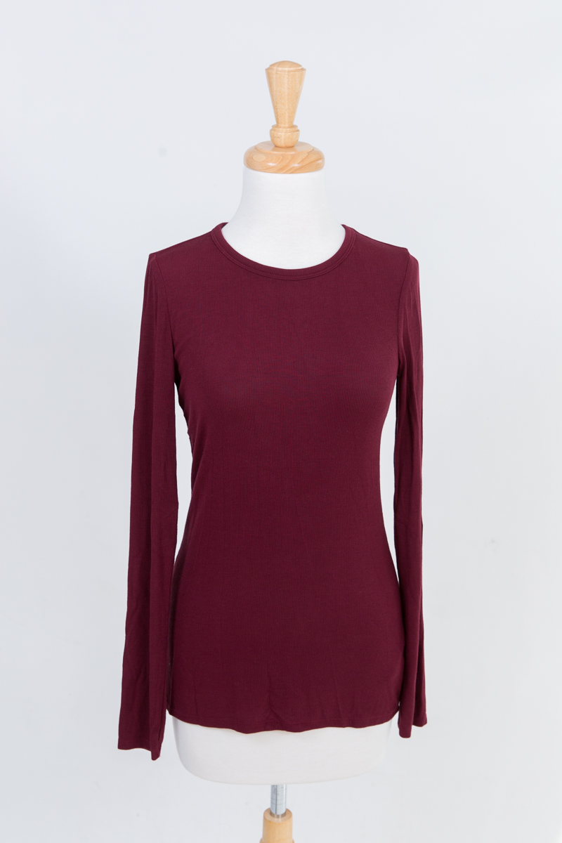 2) “Halogen” red crew neck long sleeve top